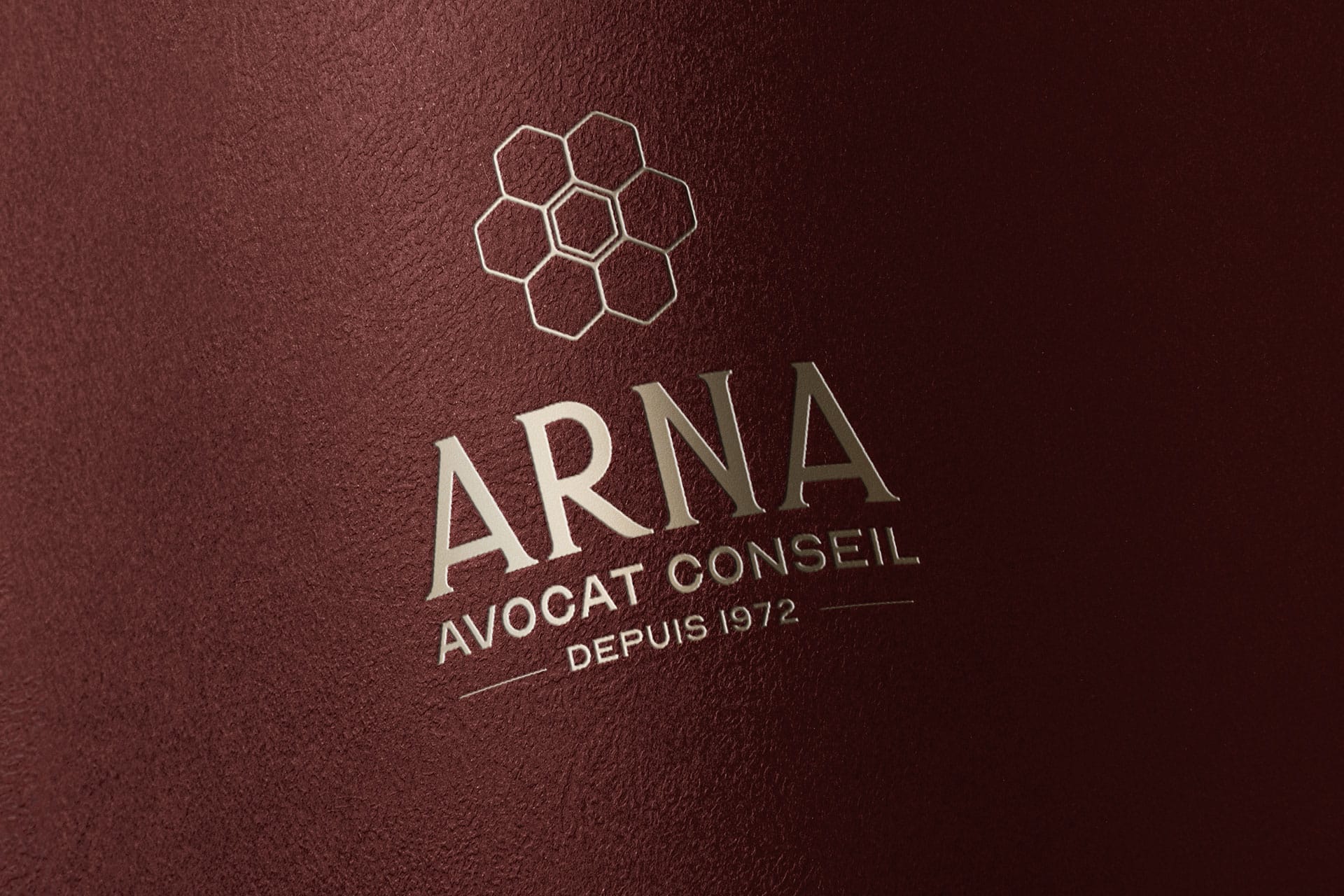 Le logo ARNA représente la structure d’une ruche (symbole de travail collectif, d’organisation et de dynamique). La double épaisseur au centre place représente le client, placé au cœur du projet, protégé. La typographie du logo, quant-à-elle, a un aspect tranchant, traduisant la force du cabinet. Le rouge évoque la passion, mais également la force, l’élégance et le dynamisme.