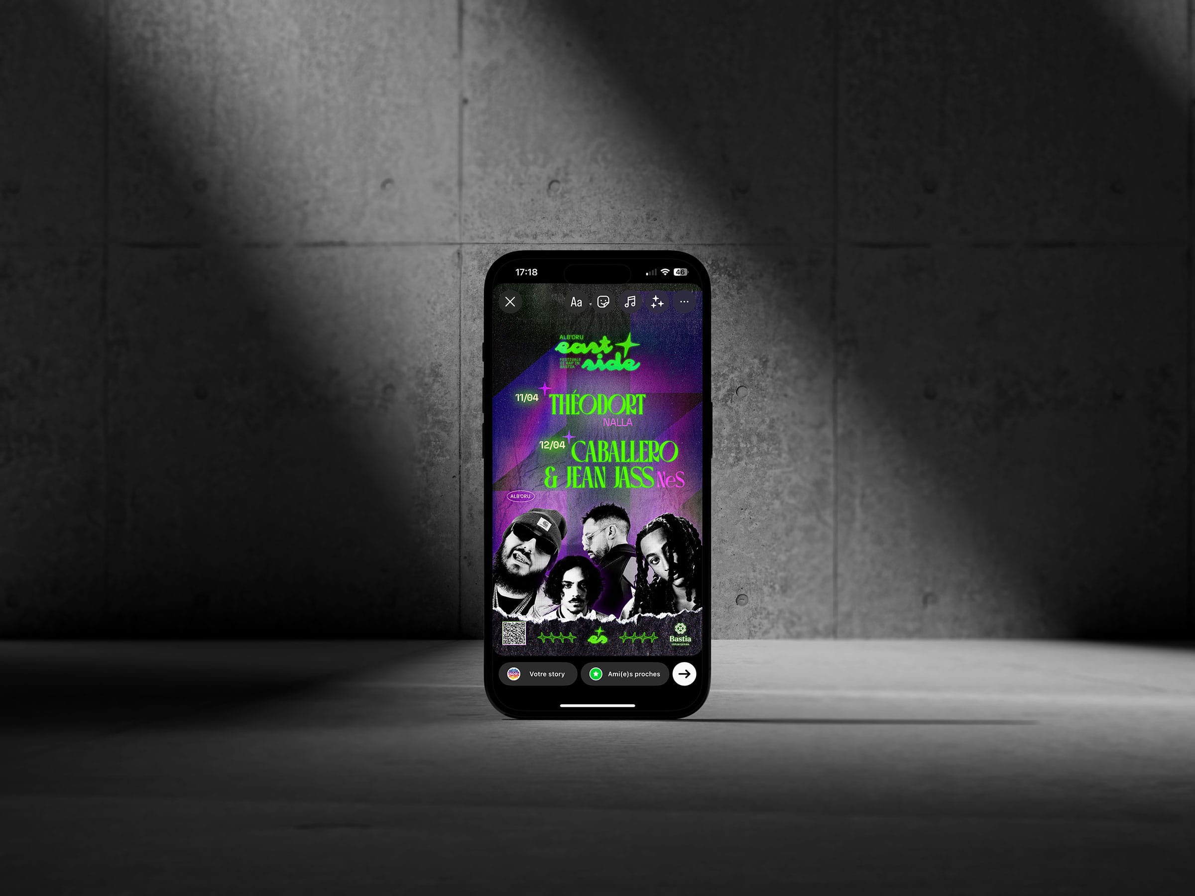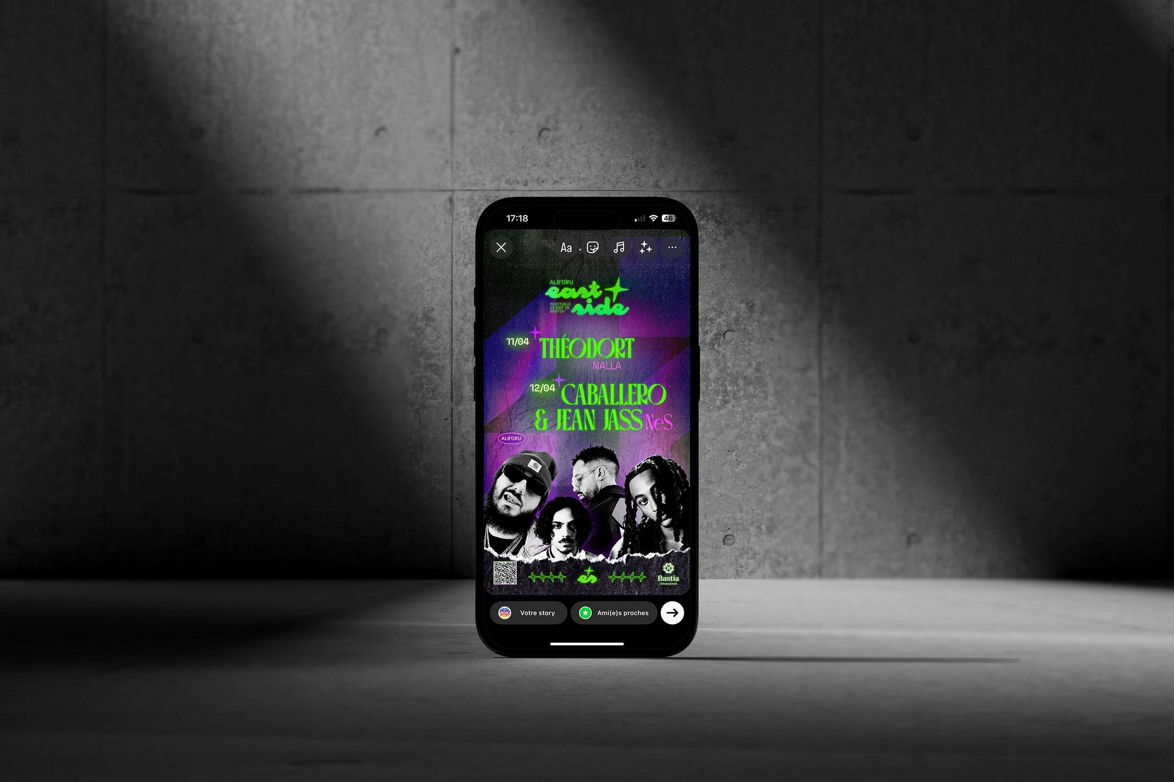 - Développement de plusieurs directions autour du nom EastSide, de l’idée de “côté Est / rive urbaine” et de la notion de festival.