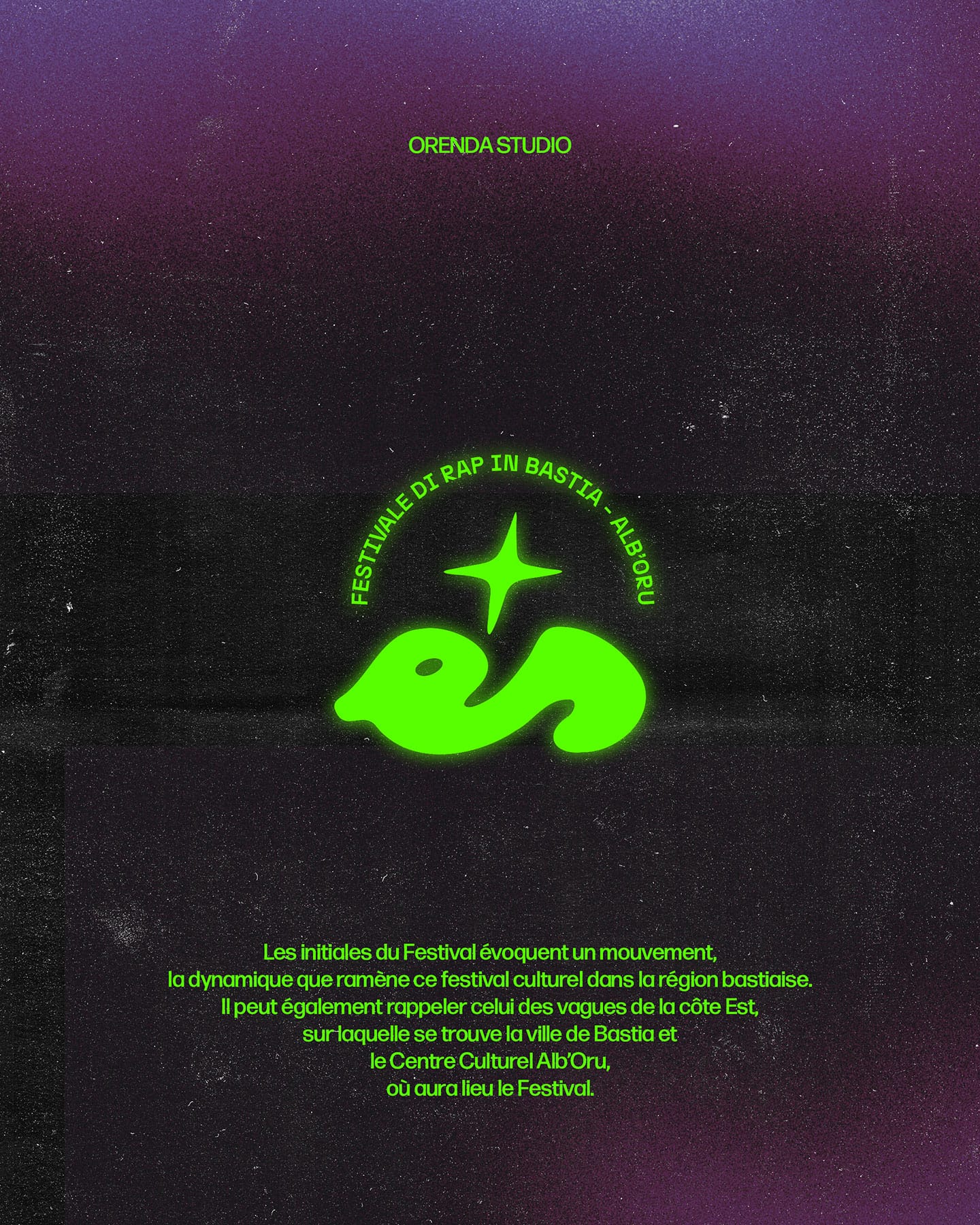 Combinaison d’une couleur violette (sombre/fond nuit/urbain) et d’accents verts saturés (néon / fluo) pour traduire l’intensité des concerts, tout en faisant écho aux couleurs de l’Alb’Oru. Deux complémentaires qui affirment le contraste.