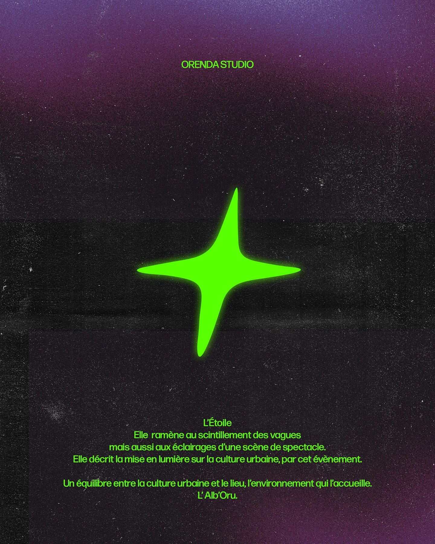 - Rythmes graphiques inspirés du logo de l’Alb’Oru et des codes du rap (blocs, découpes, overlays).